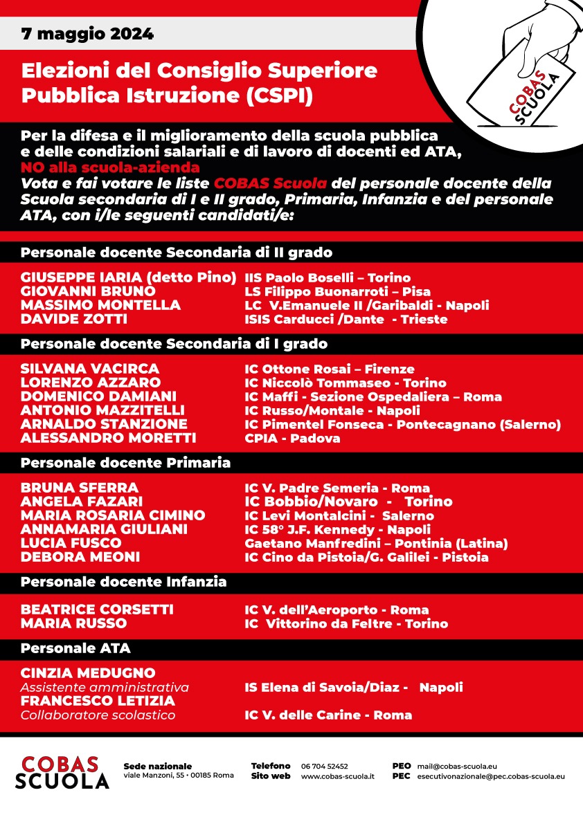 Elezioni CSPI 7 Maggio – Cobas scuola