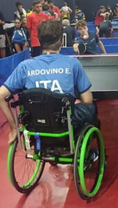 Emanuele ha gareggiato nella disciplina del tennistavolo, portando a termine un’esperienza di grande valore umano e sportivo. Pur affrontando avversari appartenenti a categorie di disabilità superiori alla sua, ha ottenuto risultati di rilievo: 5° posto nel singolare e 4° posto nel doppio, sfiorando il podio per un soffio.